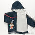 Куртка на молнии с капюшоном. Трикотажные манжеты на рукавах. Эластичная резинка по низу изделия. Подкладка из хлопка. Декорирована аппликацией и оригинальным набивным рисунком.