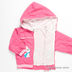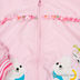 Куртка детская выполненная из мягкой плащевки с хлопковым подкладом, застежка на молнию, манжеты рукавов и низ изделия выполнены из трикотажной резинки, полочка украшена нашивками и оборками.