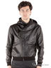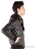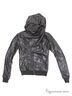 Куртка из искусственной кожи. Капюшон оригинального кроя, ассиметричная застежка на молнию, манжеты длинного рукава и низа изделия в виде трикотажной резинки, два кармана. Стильная модель для молодежи.