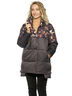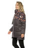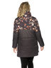 Куртка женская. Рекомендуемый температурный режим: не ниже -15°С. НОВАЯ модель куртки с комбинацией цвета и принта! Куртка на синтепоне прямого силуэта с высоким воротником-стойкой. Акцентная деталь - перепад длин между передом и спинкой, декоративные кнопки по бокам с имитацией разрезов создают эффект технологичного кроя. Двойная застежка - молния и кнопки. Боковые карманы-листочки, карман на груди декорирован пуллером с принтованной репсовой лентой. Курточная ткань с водоотталкивающим покрытием.