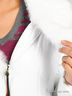 Теплая, очень легкая куртка на тонком синтепоне приталенного силуэта из тонкой непродуваемой ткани. Застегивается на молнию. Отстегивающийся отложной воротник из кроличьего меха. V-образный вырез горловины. Длинный прямой рукав. Два врезных кармана.