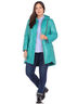 Куртка демисезонная с застежкой на молнию, ветрозащитная планка на кнопках, полуприталенного силуэта, фигурный низ, рельефы преда отделаны декоративными молниями, карманы в шве, капюшон несъемый, рукава с отворотами.