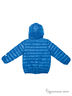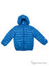 Пуховая стеганая куртка с капюшоном ярко-синего цвета, застежка - молния; ветрозащитная планка с внутренней стороны куртки; защита подбородка, по бокам два функциональных кармана на липучке, края изделия обработаны декоративной трикотажной тесьмой (рукава, капюшон и низ), для удобства хранения куртки предусмотрен чехол.