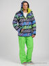 Детали: капюшон с ветрозащитным клапаном отстегивается, ворот-стойка, застежка на молнию и на клапан с липучками, длинный прямой рукав с регулирующей ширину липучкой дополнен кармашком на молнии и молнией в области подмышек для вентиляции, два внешних кармана на молнии, один внутренний карман на липучке, подкладка дополнена снегозащитным клапаном на резинке с силиконовой основой и кнопками, регулирующими ширину изделия на две позиции