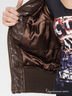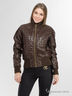 Куртка выполнена из искусственной кожи с принтом в виде вышитых логотипов. Воротник, низ рукава и низ изделия на трикотажной резинке, воротник стойка, два разрезных кармана.