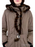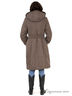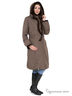 Пальто свободного покроя с капюшоном. Застежка на пуговицы. По бокам два втачных кармана. Капюшон декорирован мехом.