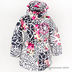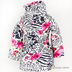 Куртка прямого силуэта застегивается на молнию и кнопки. В комплекте пояс. Декоративный тканевый элемент на полочке. Изделие украшено принтами.