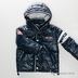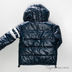 Утепленная куртка для мальчика, синего цвета. Оригинальная модель с воротником стойкой и глубоким капюшоном, которые окантованы лентой в сине-белую полоску. Скрытая манжетка с резинкой, защищает от ветра и попадания снега в рукава. Спереди два прорезных кармана и два внутренних. По низу изделия резинка-кулиска со стопперами.