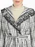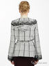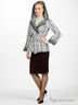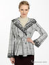 Полочка с рельефными швами от плеча, прорезными карманами в рамку, с двубортной застежкой на две пуговицы, с двумя декоративными пуговицами и потайной застежкой на одну пуговицу.