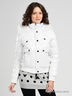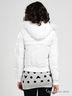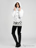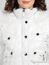 Утепленная короткая куртка белого цвета. Выполнена из непромокаемой плащевки. Съемный капюшон с мехом. Воротник стойка. Застегивается на молнию с ветрозащитой. Шесть карманов. Манжеты и низ изделия посажены на трикотажную резинку.