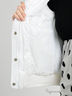 Утепленная короткая куртка белого цвета. Выполнена из непромокаемой плащевки. Съемный капюшон с мехом. Воротник стойка. Застегивается на молнию с ветрозащитой. Шесть карманов. Манжеты и низ изделия посажены на трикотажную резинку.