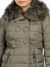 Детали: двубортное, съемный меховой воротник, застегивается на кнопки, 2 прорезных кармана на молнии