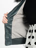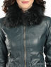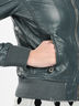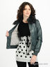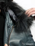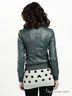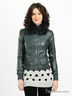 Очаровательная куртка из искусственной кожи серо-синего цвета. Отложной воротник декорирован съемным мехом. Застегивается на молнию. Два прорезных кармана на молнии. Талия посажена на широкую трикотажную резинку. Трикотажная подкладка цвета серый меланж с оригинальным принтом.