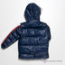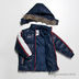 Куртка для мальчика синего цвета, утепленнаяКуртка синего цвета с воротником стойкой и отстегивающимся капюшоном, декорированным опушкой из натурального меха.