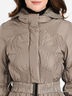 Детали: вязаный капюшон отстегивается, ворот-стойка, застежка на молнию, длинный рукав, манжеты на резинке, клапан на кнопках, два передних кармана, один внутренний карман, пришиты шлевки, пояс в комплекте