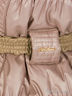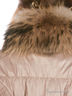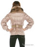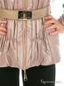 Теплая силуэтная зимняя куртка с кожаным ремнем из модной плащевой ткани с золотым отливом. Меховой воротник из лисы.