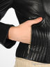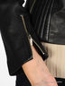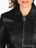 Кожаная куртка прямого кроя с отложным воротом застегивается на молнию. Фигурные вытачки. На концах рукавов вертикальные молнии. Два передних кармана на молнии. Шелковистый подклад.