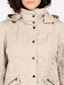 Детали: отложной воротник-стойка, отстегивающийся капюшон на молнии и кулиске, длинные рукава, застегивается на молнию и кнопки, спереди 2 прорезных кармана на молнии