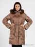 Теплая удлиненная куртка мягкого цвета согреет Вас в ненастье и сделает образ уютным и элегантным. Отстегивающийся капюшон с мехом посажен на кулиску. По всему изделию проходит прострочка. На линии бедер незаметные втачные карманы на молнии. Застежка на молнию и кнопки. В дополнение к куртке идет пояс. Утеплитель пух.