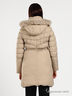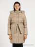 Теплая удлиненная куртка мягкого цвета согреет Вас в ненастье и сделает образ уютным и элегантным. Отстегивающийся капюшон с мехом. Широкий воротник. По всему изделию проходит прострочка. На линии бедер втачные карманы на молнии, потайной карман в подкладке. В комплект с курткой идет пояс. Застежка на молнию и кнопки.