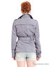 Детали: куртка удлиненная, присутствуют накладные карманы внизу с клапаном, пояс на пряжке, застежка выполнена в виде молнии и заклепок спереди, длинный рукав с ремешком, отложной ворот с лацканами, отлетная кокетка по спинке.
