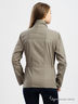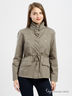Куртка с длинными рукавами из фактурной ткани стретч с поясом и карманами на кулисках. Без разрезов.