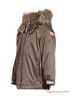 Стильная куртка прямого кроя с мехом на капюшоне. Застегивается на молнию. По бокам изделия расположены прорезные карманы на молнии. Манжеты рукавов регулируются хлястиками с липучкой.