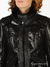 Женская дубленка на искусственном меху из лакированной кожи с кракелюрам. Отложной воротник. Застегивается на молнию. Два прорезных кармана на молнии.