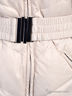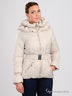 Женская пуховая куртка с двухъярусным декоративным воротником. В районе талии декоративный пояс и два прорезных кармана. Застежка на молнию спереди. Отличный вариант на каждый день.