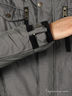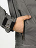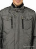 Детали: двойной ворот стойка из основного материала с застежкой на ремешок, и трикотажной резинки, двойная застежка на молниях с клапаном на металлических кнопках, застегивается до основания шеи, два боковых прорезных кармана на молнии и два прорезных нагрудных кармана на молнии, два нагрудных накладных кармашка с клапаном на металлической кнопке, рукав длинный заужен к запястью и посажен на небольшую манжету с вставкой из трикотажной резинки с ремешком из основного материала, продетым через хлястик, небольшие погоны в качестве отделки, один внутренний прорезной кармашек на молнии.