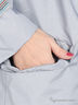 Детали: отложной ворот, длинный рукав, застежка на кнопки, тканевые рукава и полочка, два передних кармана