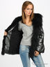 Эффектная женская куртка с утеплителем - синтепон. Ткань выполнена с лазерным напылением, что придает изделию гламурный блеск. Капюшон отсутствует. Изделие декорировано мехом енота, который можно отстегнуть. Спереди куртка застегивается на ремешок с пряжкой, без молнии и пуговиц. Линия талии подчеркнута многорядной резинкой.