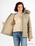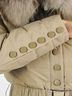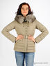 Функциональные и декоративные детали: капюшон со съемным мехом енота, молния с ветрозащитой на кнопках, 2 кармана, ремень-резинка