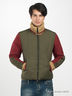 Стильная куртка с длинными вязаными рукавами, прорезными карманами по бокам, с застежкой на молнию. Манжеты и воротник оформлены в рубчик. На рукавах нашивки из ткани с коротким ворсом.