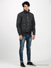 Стильная куртка с воротником стойкой, длинными рукавами и застежкой на молнию. Спереди два накладных кармана с клапанами и втачной на молнии. Манжеты, ворот и низ изделия из эластичного трикотажа. Украшена аппликацией на полочке.