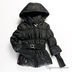 Приталенная куртка застегивается на молнию. Капюшон не отстегивается, в край вставлена регулирующая резинка. Высота воротника регулируется при помощи кнопок, вставлена регулирующая резинка. Часть рукава - трикотажная, без утепления. На уровне талии пришиты шлевки, вставлен ремешок. Два передних кармана. Флисовый подклад.