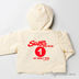 Модель прямого кроя с капюшоном застегивается на молнию. В край капюшона вшита резинка. Декоративные нашивки на полочке и рукаве, аппликация на спинке. Хлопковый подклад.
