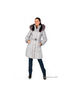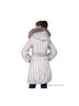 Удлиненная куртка приталена поясом с пряжкой на талии, застегивается на молнию и кнопки, имеет кулиску на подоле. Рукава и карманы – втачные. Капюшон с опушкой. Расцветка модная и экстравагантная.