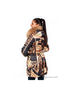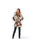 Удлиненная куртка приталена поясом с пряжкой на талии, застегивается на молнию и кнопки, имеет кулиску на подоле. Рукава и карманы – втачные. Капюшон с опушкой. Расцветка модная и экстравагантная.