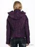 Короткая теплая куртка насыщенного фиолетового цвета с изящным лоском. Высококачественный утеплитель делает ее теплой и безопасной. Воротник стойка. Капюшон убирается в ворот на молнии. Застегивается на молнии. и планку на кнопках. Два прорезных кармана на молнии.