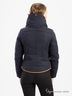 Короткая стеганая куртка в спортивном стиле с высоким воротником и закругленным низом. Капюшон убирается в воротник. Застежка на золотистую молнию и кнопки. Карманы с молниями. Отделка контрастным кантом из искусственной замши. Приталенный крой. Принт «балерина» на воротнике сзади. Длина размера S ок.69 см, разница в 2 см между размерами.