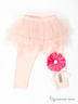 Оригинальные леггинсы для девочки зауженного кроя. Модель украшена многослойной сетчатой юбочкой и цветочной аппликацией.