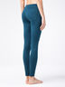 Легинсы женские облегающие из трикотажного полотна «джинс». По переду изделия — имитация гульфика и боковых карманов. По спинке — фигурные кокетки и накладные карманы. Верх изделия обработан поясом с широкой резинкой внутри. По концам накладных карманов и кокеткам переда на участке боковых швов установлены хольнитены. По боковым швам, швам притачивания кокеток передних и задних половинок, среднему шву передних половинок, имитации застежки-гульфика, шву сидения задних половинок выполнены двойные отделочные строчки.