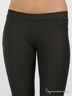 Леггинсы из плотного, приятного на ощупь трикотажа цвета хаки. Верх изделия посажен ан трикотажную резинку. Декоративная прострочка в тон имитирует карманы и ширинку.