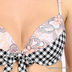 Лиф для плавания на косточках. Чашечки с диагональным швом. Бретели регулируются по длине. Пластиковая застежка сзади. Выполнен из шелковистого эластичного материала.