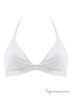 Бюст - глубокие фиксированные треугольники со съемными корректорами внутри и тонкими завязками на шею. Широкий эластичный пояс под грудью с выходом на галстучные завязки и фиксацией на спине.