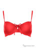 Бюст — мягкие вместительные чашечки на каркасной поддержке и регулировкой объёма по верхнему краю декольте. Тонкие бретели с регуляторами высоты. Модель фиксируется на спине фирменной застёжкой.