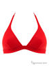 Бюст - глубокие фиксированные треугольники со съемными корректорами внутри и тонкими завязками на шею. Широкий эластичный пояс под грудью с выходом на галстучные завязки и фиксацией на спине.