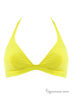 Бюст - глубокие фиксированные треугольники со съемными корректорами внутри и тонкими завязками на шею. Широкий эластичный пояс под грудью с выходом на галстучные завязки и фиксацией на спине.