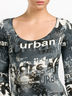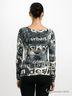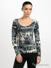 Трикотажный лонгслив с оригинальным принтом. Широкая круглая горловина прекрасно подчеркивает линию шеи. Очень длинные стильные рукава.